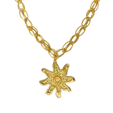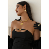 The Aria Necklace from Mountain & Moon is a must-have piece. Featuring a stunning orb detail gold chain and iconic Star motif pendant, this standout necklace is bold yet feminine. Crafted with a hammered texture and vintage touch, its eye-catching design is both fresh and timeless.