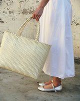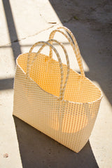 The Eco Utility is an oversized slim tote, woven with mix shades and features double woven handles for extra market finds and a solid block colour bottom. The Utility Tote is your multi purpose tote, taking you from the beach to the store. Each tote is thoughtfully designed in house by mimmi terra. Each tote is durable and designed to withstand a lifetime of daily rituals and adventures.