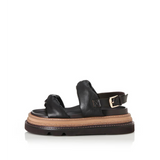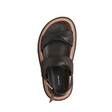 Elevate your style with the Alias Mae Vee - Choc Leather Sandal. Made from 100% leather upper and lining, this sandal features padded twisted two straps for comfort and a super chunky stacked flatform with raffia detail. Note: Runs small, we recommend sizing up.