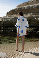 The Aston Studio Neri Shirt is a celebration of summer sophistication. Crafted from lightweight 100% linen, this short-sleeve button-up showcases the vibrant Foam/Celeste print adorned with bold blue floral motifs. Contrasting blue trims along the collar, hem, and cuffs lend structure and refinement to its relaxed, breezy silhouette, making it an ideal choice for warm-weather elegance.
