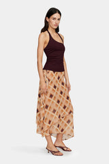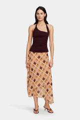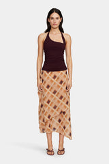 Timeless elegance meets sustainable fashion with the Ownley Aloe Midi Skirt in Caramel Check. Designed to sit mid-rise, this midi-length skirt features a flattering asymmetrical hemline and a chic side waist tie for a refined yet effortless look. Crafted from 100% recycled polyester, it’s fully lined for comfort and designed for all-day wear. Perfect for dressing up or down, this skirt is a must-have for any season.
