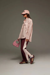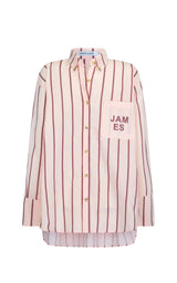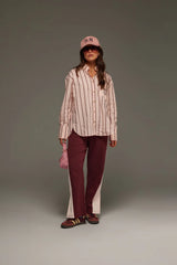 The Alpine Cotton Stripe Shirt in Light Blush is a timeless addition to your wardrobe, offering both comfort and style. Crafted from 100% cotton, this shirt features a relaxed fit with a curved hemline, exaggerated cuffs, and a buttoned collar.A front pocket adorned with an exclusive print adds a unique touch to this classic piece. Pair it with the Saint Germain Knit Pant in Red Wine and your favourite sneakers for an effortlessly cool everyday look.