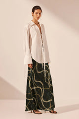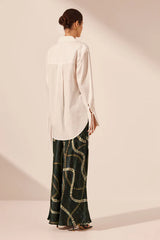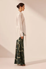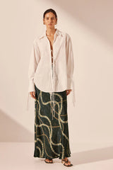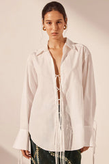 Oversized shirt with tie front detailing in a soft organic cotton poplin.