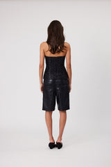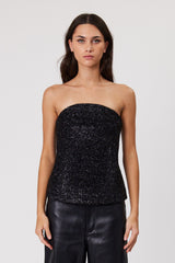 Add a little sparkle to your everyday with the Archer Bodice, a sleek, strapless design that sculpts and flatters. Fitted through the chest and flaring gently at the hem, it creates a flattering, cinched-in silhouette. Perfect for elevating your denim or pairing with a tailored pant for evening wear.