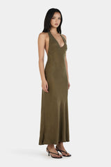 - Halter neck cupro dress
