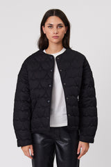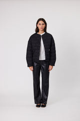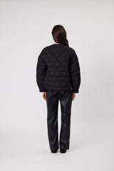A modern take on classic quilting, the Ava Jacket by Remain Studio features a collarless silhouette with heart-shaped quilted detailing for a chic yet cozy finish. Designed with a relaxed fit and dropped shoulders, this versatile jacket offers effortless layering for any season. The snap button front closure and bound edge finish add to its refined aesthetic.