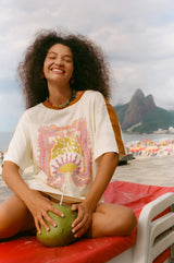 Make a bold statement with the Kinga Csilla Azure Dragon King Tee, featuring a striking abstract dragon print. This effortlessly cool raglan tee blends modern edge with a relaxed, vintage-inspired silhouette.