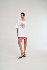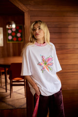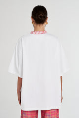 The WASABI NEON band Tee is a classic oversized fit made from 100% Cotton. This short sleeve Tee boast the hand-painted NEON LILY on the front with a custom Summi Summi neon plaid collar.