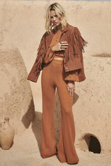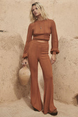 The Brooklyn Bells in Ginger is luxuriously soft and a timeless staple for any season. These bells feature a pointelle knit throughout and an elasticated waist that ensures a comfortable fit. Pair back with the matching Brooklyn Sweater or a Spell biker tee to add a touch of rock n roll.