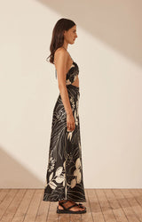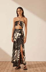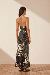 Halter midi dress with keyhole and cut out detail in a luxurious silk satin in the exclusive Capri print.