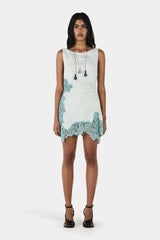 The Cleo Mini Dress by Hansen & Gretel is a lightweight, feminine statement designed for warm-weather dressing. Cut to a mini length, this sheer dress features an open mid-back and an asymmetrical lace hemline that adds soft movement and delicate detail. Crafted without lining for an airy, barely-there feel, the Cleo Dress is perfect for layering over swim, styling with a slip, or wearing on balmy days and nights.