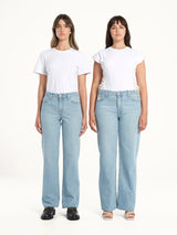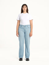 Our go-to straight leg jean. The Daria Jean sits below the navel, is fitted through the hip and follows a relaxed straight leg profile, finishing at the top of the shoe. Crafted in premium rigid denim, made with 20% post-consumer recycled cotton.