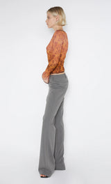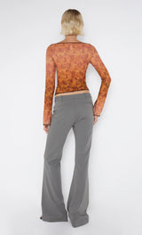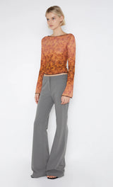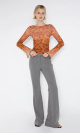 Crafted from a soft mesh fabric, The BEC + BRIDGE Fleur De Lis Long Sleeve Top is an update on a staple classic, adding instant flair to an outfit. The long sleeve top features a boat neckline with split on sleeves. Styled with our Marissa Bootleg Pant.