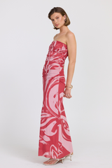 Turn heads this season with the Sovere Studio Flora Strapless Dress, featuring a bold and exclusive Hibiscus print. Designed for effortless elegance, this fitted strapless dress is crafted from a luxe stretch mesh fabric with gathered side detailing that enhances your silhouette.