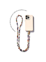 Elevate your everyday essentials with the Edrae Wristlet: Gaia, a bold and versatile accessory designed to make a statement. Meticulously hand-beaded with vibrant Yan Yuan Agate, this accessory transforms your phone into a statement piece. Featuring a rich mix of vibrant colours, including shades of pink, orange, brown, white, blue and yellow and occasionally translucent patterns, creating a striking layered appearance.