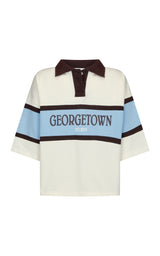 Step into sporty sophistication with the GT Rugby Short Sleeve Polo Shirt in Coconut by Araminta James. Made from 100% ultra-soft cotton, this elevated polo features a contrast Espresso V-neck collar and button placket, giving a modern twist to a timeless silhouette.
