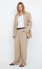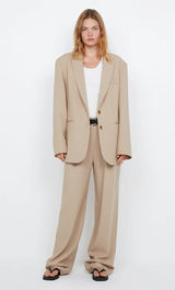 The BEC + BRIDGE Jude Blazer in Sand is a timeless wardrobe essential with a modern edge. Designed with an oversized, boxy fit, this single-breasted blazer features structured shoulder pads for a sharp silhouette. A centre-front button closure and back vent add classic tailoring details, making it a versatile layering piece for any occasion. Pair with BEC + BRIDGE Jude Pant.