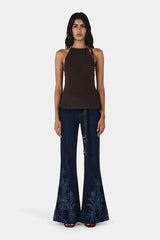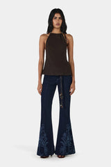 The Juniper Silk Top by Hansen & Gretel is an elevated halter-style piece designed to drape effortlessly over the body. Cut on the bias for a flattering, fluid fit, this luxe silk top features an open back with delicate beaded detailing for a refined statement finish. An adjustable side-neck tie allows you to customise the neckline, wearing it softly gathered or more relaxed.