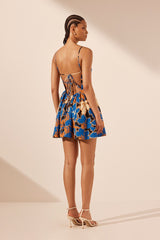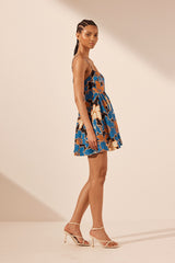 Step into effortless style with the Shona Joy Karla Mini Dress, designed in the exclusive Karla floral print and made from a luxurious Linen TENCEL™ blend. The dress features a flattering square neckline with adjustable straps and a striking low open back adorned with lace detailing and a drawstring for added elegance. The gathered mini-length skirt and side pockets offer both practicality and charm, while the invisible back zip ensures a seamless fit. Light and breathable, this lined dress is perfect for sunny days, combining comfort and sophistication.