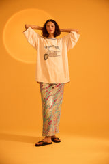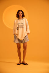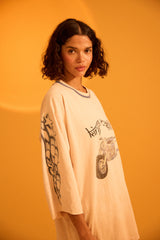 Introducing the Desert Racer Tee, a bold and iconic piece in the Kinga Csilla collection. This cream-colored 3/4 sleeve tee features a striking motorbike graphic on the front, paired with the Kinga Csilla logo, evoking the spirit of adventure and freedom.
