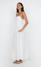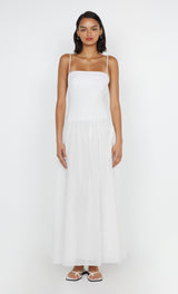 The BEC + BRIDGE Lina Maxi Dress in White is an effortless maxi dress that features a contrast rib mid-section, with a breezy cotton bust and skirt. Designed for everyday style, this dress is perfect for casual outings or summer gatherings.