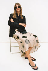 Elevate your wardrobe with the Silk Laundry Long Bias Cut Skirt in the delicate Seashells shade. Crafted from 100% silk, this timeless skirt is cut on the bias to create a flattering, figure-skimming silhouette that moves effortlessly with the body. An elasticated waistband ensures comfort without compromising style, while the ankle-length finish offers a versatile look that transitions seamlessly from day to night.