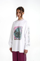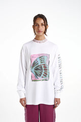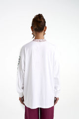 The LS Band Tee in Crypsis by Summi Summi is a classic oversized long-sleeve tee featuring a high collar and a soft pink hue. Designed for effortless style, it showcases Summi Summi's custom font, Viceroy hand-painted artwork on the front, and Crypsis font detailing down the sleeve. Crafted from 100% cotton, this tee offers a breathable and relaxed fit for everyday wear.