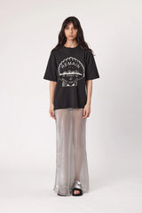 Elevate your casual wardrobe with the Ocean's Edge Tee. This short sleeve t-shirt, featuring a relaxed fit and exaggerated sleeves, combines comfort with contemporary style. The large custom chest print adds a unique touch, making it perfect for pairing with your favorite denim for an effortless everyday look.
