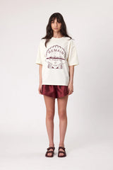 Elevate your casual wardrobe with the Ocean's Edge Tee. This short sleeve t-shirt, featuring a relaxed fit and exaggerated sleeves, combines comfort with contemporary style. The large custom chest print adds a unique touch, making it perfect for pairing with your favorite denim for an effortless everyday look.