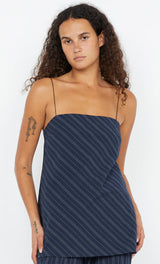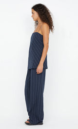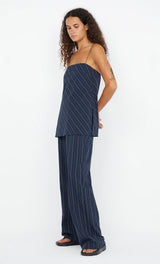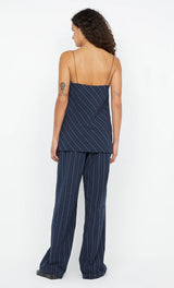 The BEC + BRIDGE Peyson Top in Ink and Ivory Stripe is a sleek longline top with a straight neckline and thin shoulder straps. Designed with bust darts for shape and side slits for movement, it’s finished with an invisible side zip for easy wear. Pair it with the BEC + BRIDGE Peyson Pant for a coordinated look, perfect for casual outings, lunch dates, or weekend events.