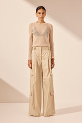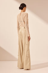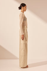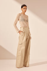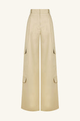 Patch pocket slouchy cargo pant in a structured TENCEL™ cotton with a lustrous finish.