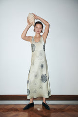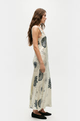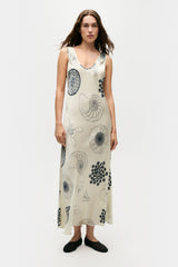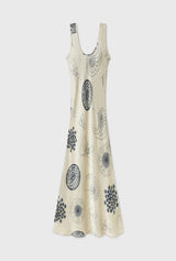 Silk Laundry Scoop Neck Dress crafted from pure silk in limited-edition ’Fibonacci Off-White’. Tailored with a bias cut for a regular fit. Sleeveless with a scoop neckline, flowing into an ankle-length hem.