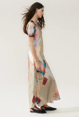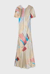 Silk Laundry bias cut dress crafted in 100% silk detailed with a round neckline with logo chain at the back. Cut on the bias to a fluid fit and ankle-length hemline.