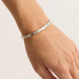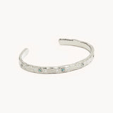 Featuring natural sky-blue Topaz and cubic zirconia crystals, this unique cuff was inspired by the sky at dawn. Wear your cuff by itself as a sparkling statement piece or layered with other keepsakes to create an elevated wrist stack.