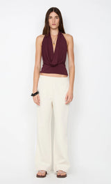 Make an entrance in the BEC + BRIDGE Sonnie Halter Top, a modern, elevated essential for nights out and special occasions. Crafted in Australia from a soft stretch jersey, this plum halter top features a flattering low cowl neckline and open back detail that exudes effortless confidence.