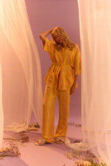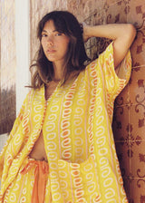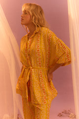 The Kinga Csilla ultimate vacation-ready shirt in vibrant yellow and orange, perfect for breezy beach days or sunny getaways, with a lightweight feel for effortless style.