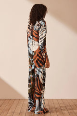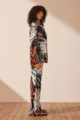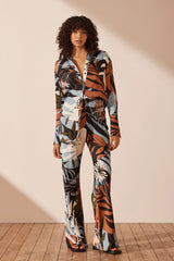High waisted bias cut pant in the exclusive Tramonto print in a luxurious silk satin.