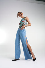 A modern twist on a classic staple, the SUMMI SUMMI Zip Jeans are crafted from 100% blue cotton denim for a premium feel and effortless wear. Designed with a mid-rise waist and slightly wide-leg silhouette, these jeans strike the perfect balance between relaxed and refined. The standout feature is the full-length zippers on both sides, allowing you to customise your look from sleek and structured to effortlessly undone.