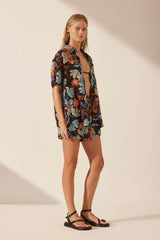 Short sleeve shirt in the exclusive Flotte print in a luxurious silk.