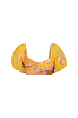 The Katarina Top is a stunning cross over crop top with an adjustable hook and eye back. Cut in our multi floral print, the cropped silhouette is balanced out by the puff sleeves and heavily gathered panels. Pair back with the Mae Skirt for a matching set.