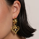 Beautiful, statement, chic & fun! The Mountain & Moon Bella Earrings are a new heart motif to add to the collection, a classic thick gold hoop and curly heart shaped drop with a cute little pearl as the cherry on top. A classique style that go with absolutely everything, these will be in high rotation!