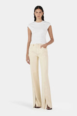 The Gigi Baby Tee in Ivory by Hansen & Gretel is the ultimate everyday essential with a modern edge. Designed with a tight, figure-hugging fit, this baby tee features ribbed detailing, raglan cap sleeves, and subtle waist tuck stitch accents for a flattering finish. A versatile staple, it pairs effortlessly with denim, tailoring, or skirts, making it a must-have for any wardrobe.