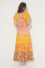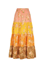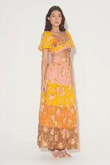 The Mae Skirt is our gorgeous tiered maxi skirt cut in our multi floral print. The high waisted fit is complimented by heavily gathered panels that create a full hemline. The waistband includes an attached waist tie to wrap and accentuate the waist further. Pair back with the Cherry Corset for a matching set.