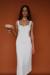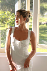 The Chateaux Ava Dress by Modalita Vacanza embodies effortless femininity and timeless elegance. Crafted from 100% cotton, this midi dress features delicate lace trimming, flattering panel lines, and a sweetheart neckline that enhances every silhouette. Finished with refined piping details along the front and back, it offers structure and grace in equal measure. Perfect for garden parties, long lunches, and summer soirées, this signature style captures the essence of modern romance.