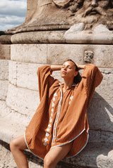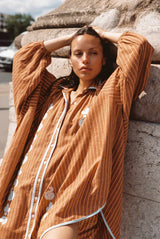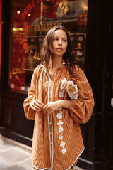 Effortless, expressive, and endlessly wearable, the Kinga Csilla Bello Swirl Cupio Shirt Dress is a dreamy fusion of vintage charm and modern ease. Crafted with a breathable cotton fabrication and designed in an oversized, draped silhouette, this shirt dress is made to move with you. Featuring a collared neckline, button-down front, and elasticated cuffs, it’s both relaxed and refined. Finished with retro-inspired blue swirl appliqué embroidery, this dress delivers artisanal detail in all the right places.