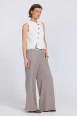 Designed for effortless sophistication, the Sovere Iona Pant offers a high-waisted, relaxed fit with a wide-leg silhouette that flows elegantly with every step. Crafted from a rayon blend fabrication, these pants feature an elasticated back waist for comfort, side insert panels pleated at the waist, and a main fabric rouleau waist tie for an elevated touch. Finished with welt pockets at the back and a fly front with a hook & bar closure, this versatile piece is perfect for day-to-night dressing.