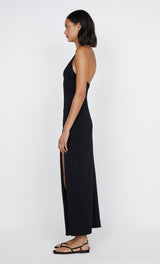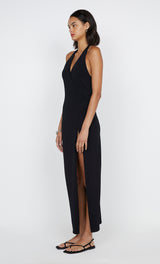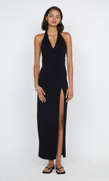 Sleek and sophisticated, the BEC + BRIDGE Irie Halter Dress in Black is crafted from a luxe ribbed fabric that perfectly contours the body. This elegant midi dress features a flattering halter silhouette with a V neckline, a fixed wrap detail at the waist, and a subtle leg split that adds a touch of allure. Designed to hug your curves, this dress is a timeless choice for day-to-night styling.