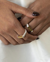Wearing the Nisha Ring is like slipping into confidence — bold, sculptural, and unmistakably chic. The hammered mixed metal finish gives a unique edge that we love. The Nisha elevates any look with a touch of timeless glamour, unapologetically radiant in the most effortlessly modern way.