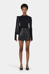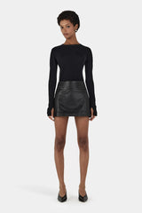 The Dixie Leather Skirt is an A-line leather mini skirt with a wide waistband and a centre back zipper for a sleek silhouette. The Skirt has panel detailing and is fully lined for comfort.