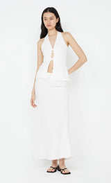 Meet your new go-to for effortless style with the BEC + BRIDGE Everly Maxi Skirt in White. Crafted from airy, breezy cotton and cut on the bias, this transeasonal essential drapes beautifully, skimming the silhouette in all the right places. Designed to sit at the mid to low waist, it features an elasticated waistband for a perfect fit. Style this versatile piece with your favorite crop top or a relaxed blouse for an effortlessly chic look.